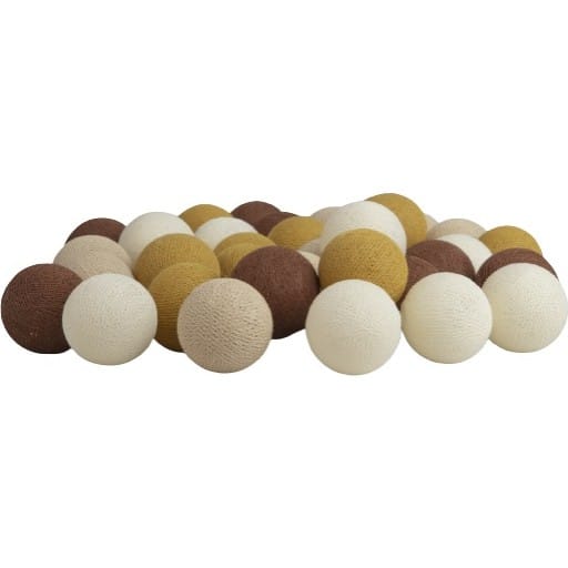 Iris Lights Biscotti lyskædeLyskæde med flotte kugler i forskellige hvide og brune nuancer – En rigtig fin lyskæde med en masse forskellige farvede kugler i fint sammenspil.Boldene sidder 2 & 2 med 14 cm. imellem. Hver kugle er lavet i hånden med kvalitet