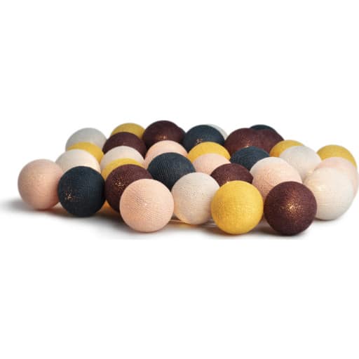 Iris Lights Copenhagen lyskædeLyskæde med flotte kugler i forskellige farvede nuancer – En rigtig fin lyskæde med en masse forskellige farvede kugler i fint sammenspil.Boldene sidder 2 & 2 med 14 cm. imellem. Hver kugle er lavet i hånden med kvalitet for